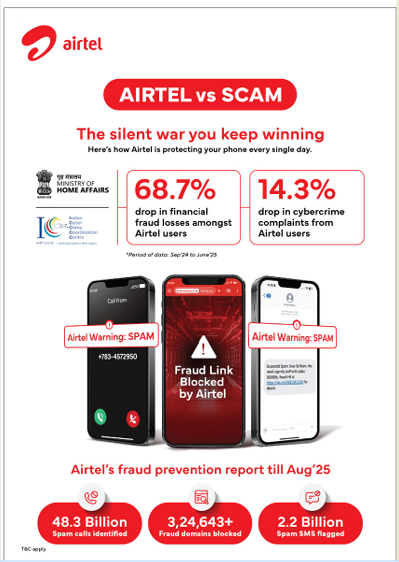 In September 2024, in a pioneering move to curb the country’s spam menace, the company launched India’s first network-based AI-powered Spam detection solution. It went a significant way towards solving the growing menace of spam calls and messages. The solution remains a first-of-its-kind solution by a telecom service provider in the country, to alert customers in real-time to all suspected spam calls and SMSes. In continuation to this, in May 2025 the company unveiled world’s first, solution that detects and blocks malicious links across all forms of communication on its network, in real time. This safe service has been seamlessly integrated with, and auto-enabled for all Airtel mobile and broadband customers at no additional cost. The findings of the I4C analysis highlight the effectiveness of these proactive measures by Airtel for its customers.