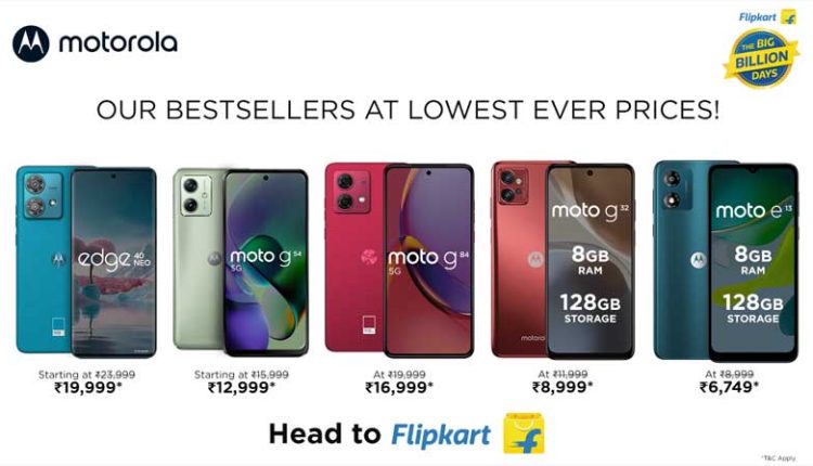 The special festive special prices on its bestselling smartphones including the moto g54 5G,moto g32 and the Big Billion Days Specials launch-motorola edge 40 neo, with sale starting from 28th September on Flipkart