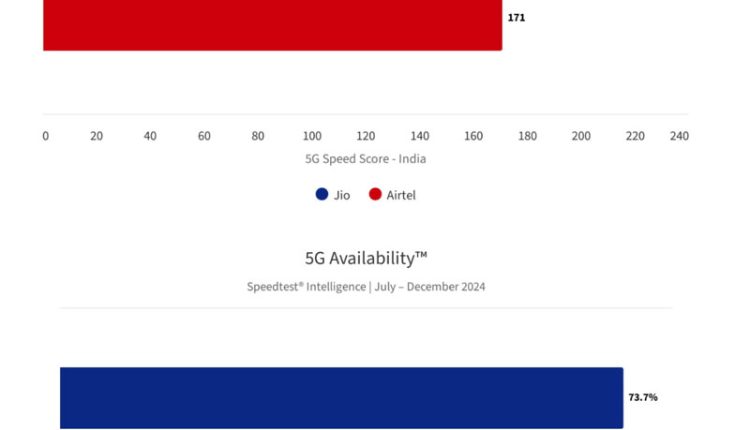 Jio also recorded the highest 5G Availability in India during this period, based on Speedtest Intelligence® data, with 73.7% of its users accessing its 5G network a majority of the time. Jio’s mobile network extended farthest within the market, with a Coverage Score of 65.66 during the second half of 2024. Airtel followed with a score of 58.17.