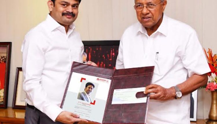 Dr B Kannan, Medical Administrator, Meenakshi Mission Hospital and Research Centrehanded over the demand draft toHonourable Chief Minister of Kerala Shri. Pinarayi Vijayanat Wayanad.