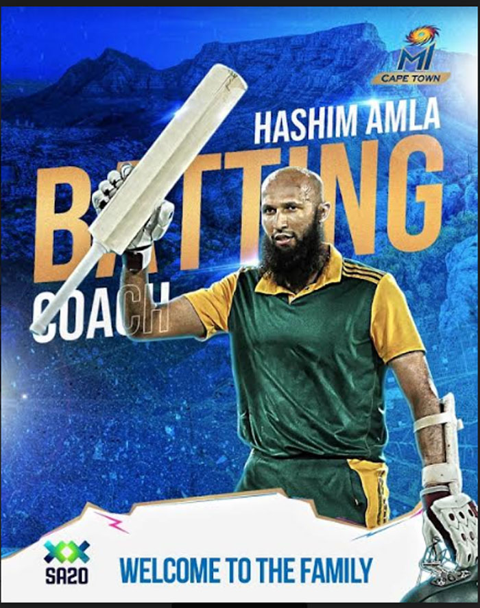 Mr. Hashim Amla, Batting Coach, MI Cape Town, said, “I’m thrilled to take up this assignment with MI Cape town. Big thanks to MI owners, management and my manager for facilitating this so smoothly. From everything they have planned it looks like it’s going to be amazing platform that will attract our local talent. Bringing my experience as a player and mentor I am excited to help MI Cape Town players bring the best out of themselves and also make SA cricket stronger.”