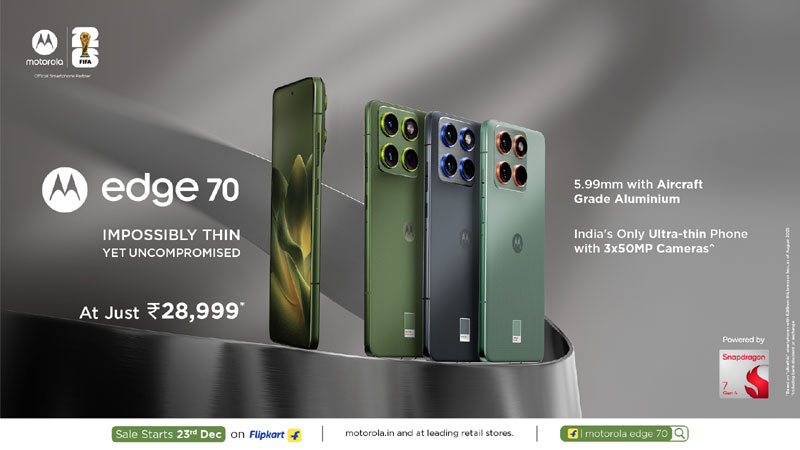 Speaking on the launch, Mr. T.M. Narasimhan, Managing Director, Motorola India, said, “At Motorola, we continue to challenge conventional boundaries by bringing together purposeful innovation with a deep understanding of what consumers truly value. With the motorola edge 70, we are proud to introduce a device that reimagines what an ultra-slim smartphone can be—delivering an incredibly thin design without compromising on cameras, power, intelligence or durability. This launch marks a significant step forward in our journey to offer premium, design-first and AI-driven experiences that enable users to do more, express more, and elevate their everyday life with technology that is both beautifully crafted and profoundly capable.”