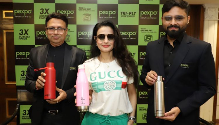 New Delhi: Pexpo, India’s largest and leading water container manufacturer, showcased a range of sustainable stainless steel water bottles, the only products in the category certified by ISI. The products were unveiled in New Delhi by Mr. Anup Padia, Director, Pexpo, Mr. VedantPadia, Director, Pexpoand Ms. Ameesha Patel, renowned actress and fitness enthusiast.