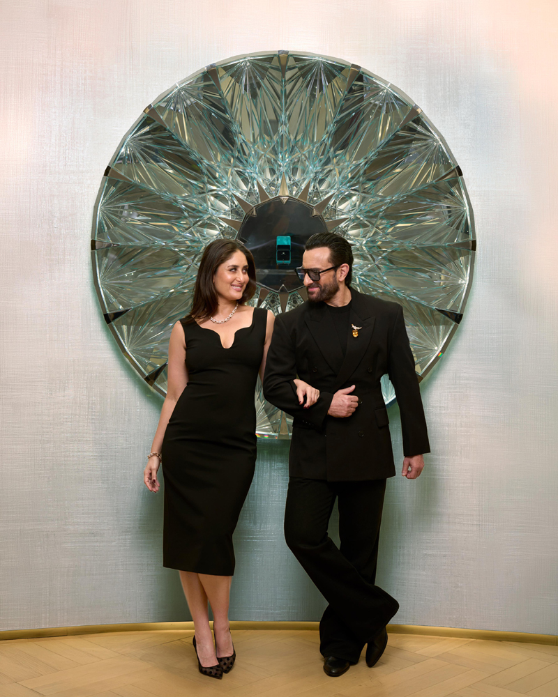 For the visit, Kareena Kapoor Khan wore pieces from Tiffany HardWear, including the Graduated Link Necklace, Large Link Bracelet, and Large Link Earrings in rose gold with pavé diamonds. Saif Ali Khan complemented the moment with the Jean Schlumberger by Tiffany & Co. Bird on a Rock Brooch, crafted in yellow gold and platinum with a citrine, diamonds, and a pink sapphire. Effortless and understated, their styling reflected confident, self-assured sensibility — qualities that resonate with both their individuality and Tiffany & Co.’s approach to celebrating love.