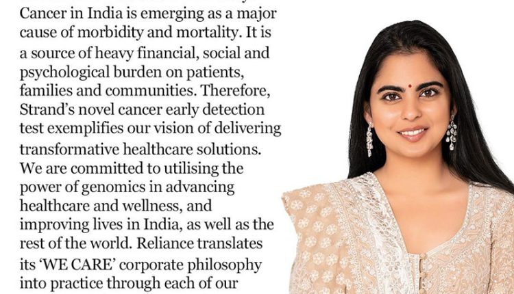Isha Ambani Piramal, Member of the Board, Reliance Industries Limited, said, “Reliance is committed to pioneering breakthroughs that reshape the future of medicine in service of humanity. Cancer in India is emerging as a major cause of morbidity and mortality. It is a source of heavy financial, social and psychological burden on patients, families and communities. Therefore, Strand’s novel cancer early detection test exemplifies our vision of delivering transformative healthcare solutions. We are committed to utilising the power of genomics in advancing healthcare and wellness, and improving lives in India, as well as the rest of the world. Reliance translates its ‘WE CARE’ corporate philosophy into practice through each of our initiatives. The new Genomics Diagnostics & Research Centre demonstrates this yet again.”