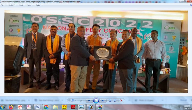 Bhubaneswar: Tata Steel Mining Limited (TSML)’s Ferro Alloys plants at Gopalpur and Athagarh have been awarded with ‘Kalinga Safety Excellence Award’ in Gold and Platinum category, respectively, by Institute of Quality and Environment Management Services (IQEMS).