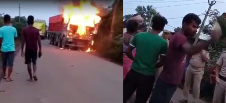 Jharsuguda/Sambalpur(Ramakant Biswal) :_A 5-year-old killed in a road accident near Jharsuguda DHH.. A Truck of Annapurna transport ran over three people. Two persons seriously injured and transferred to Burla medical. The truck was set on fire by locals. Truck driver ran away from the spot .