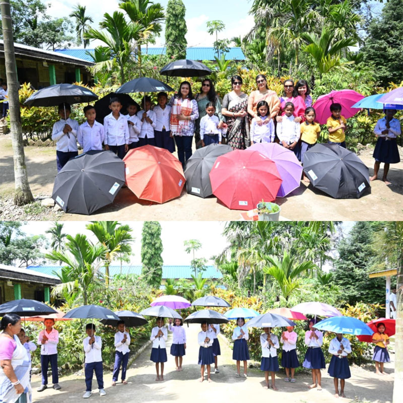 Bongaigaon: In a thoughtful gesture aimed at supporting children during the monsoon season, Bardwi Shikla Ladies Club as a part of Corporate Social Responsibility donated 123 umbrellas to all the students of Chedamari LP School, under Kalipukhuri Village Council Development Committee (VCDC), Kokrajhar.The donation was led by Smt. Kasturi Maitra, President of Bardwi Shikla Ladies Club, who personally handed over the umbrellas to the young students. Speaking on the occasion, she emphasized the importance of ensuring that children have the basic amenities needed to attend school regularly and comfortably, especially during the upcoming rainy season. She expressed the club’s continued commitment to community welfare and child-friendly initiatives.