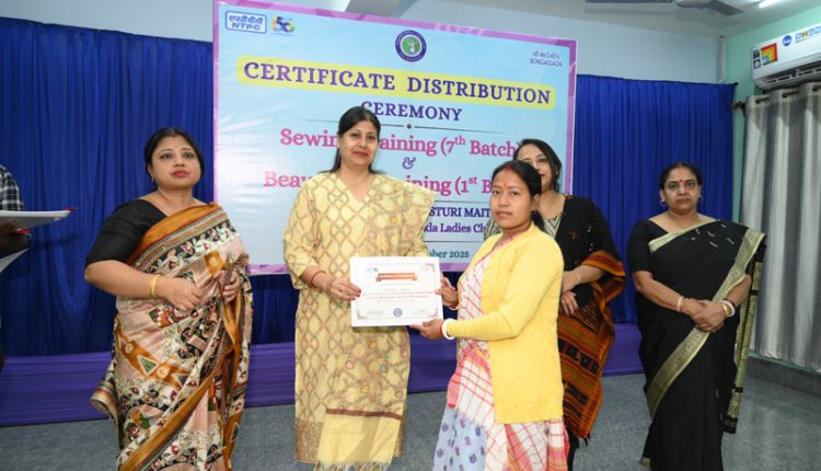 Bongaigaon: Bardwi Shikla Ladies Club, NTPC Bongaigaon organised a certificate distribution ceremony on Monday to mark the successful completion of its Sewing Training (7th Batch) and Beautician Training (1st Batch), aimed at creating livelihood opportunities for local women and promoting self-reliance.