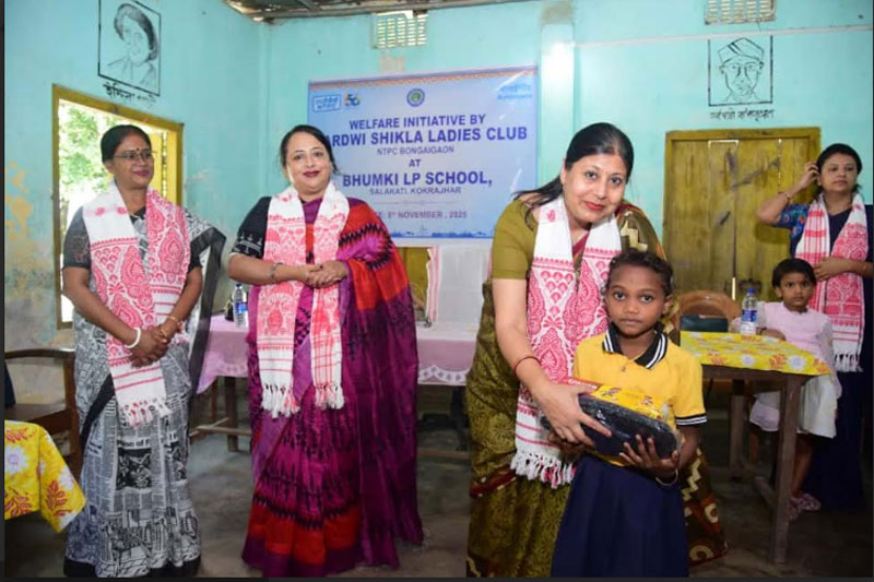 Bongaigaon: As part of the welfare initiatives of NTPC Bongaigaon, Bardwi Shikla Ladies Club distributed warm sweaters and school shoes to 88 students of Bhumki LP School, Kokrajhar, bringing smiles and comfort to the children as winter approaches.