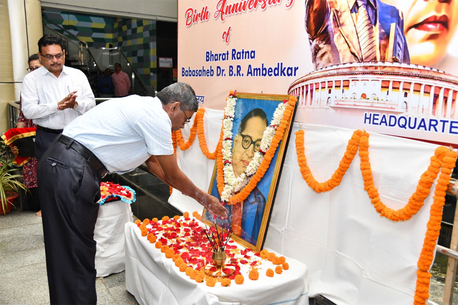 Bhubaneswar : East Coast Railway observed the Birth anniversary of Bharat Ratna Dr. B. R. Ambedkar at its headquarters at Rail Sadan, Bhubaneswar. General Manager Shri Parmeshwar Funkwal, led the officials of East Coast Railway in paying homage through floral tributes to the architect of the Constitution of India. Shri L.V.S.S. Patrudu, Principal Chief Personnel Officer, co-ordinated the programme. Ambedkar Jayanti was also observed in all the Divisional Headquarters of East Coast Railway at Khurda Road, Waltair, Sambalpur & Rayagada by respective Divisional Railway Managers.