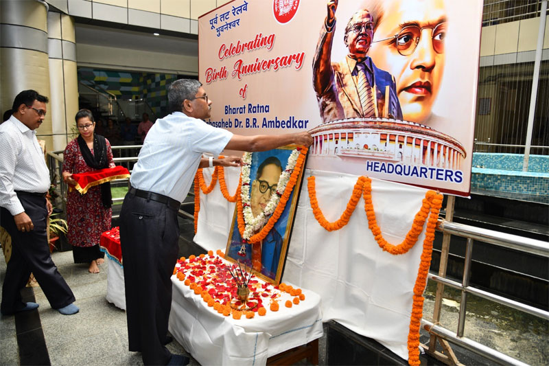 Bhubaneswar : East Coast Railway observed the Birth anniversary of Bharat Ratna Dr. B. R. Ambedkar at its headquarters at Rail Sadan, Bhubaneswar. General Manager Shri Parmeshwar Funkwal, led the officials of East Coast Railway in paying homage through floral tributes to the architect of the Constitution of India. Shri L.V.S.S. Patrudu, Principal Chief Personnel Officer, co-ordinated the programme. Ambedkar Jayanti was also observed in all the Divisional Headquarters of East Coast Railway at Khurda Road, Waltair, Sambalpur & Rayagada by respective Divisional Railway Managers.