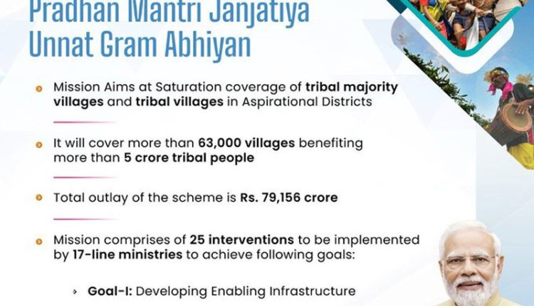 New Delhi: The Union Cabinet chaired by Prime Minister Shri Narendra Modi approved Pradhan Mantri Janjatiya Unnat Gram Abhiyan with total outlay of Rs.79,156 crore (Central Share: Rs.56,333 crore and State Share: Rs. 22,823 crore) for improving the socio-economic condition of tribal communities, by adopting saturation coverage for tribal families in tribal-majority villages and aspirational districts.
