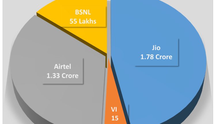 As per TRAI data, nationally, Jio added over 32 lakh new mobile subscribers, 1.88 lakh new wireline subscribers and over 4.41 lakh new FWA (JioAirFiber) subscribers in the month of March.