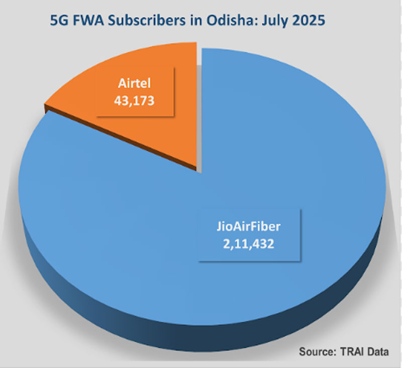 JioAirFiber dominates Odisha 5G FWA market, crosses 2 lakh subscribers mark in July: TRAI Data