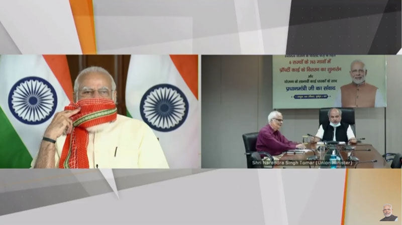Prime Minister Shri Narendra Modi launched physical distribution of property cards under SVAMITVA scheme through video conferencing and interacted with the beneficiaries of the scheme.