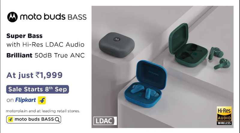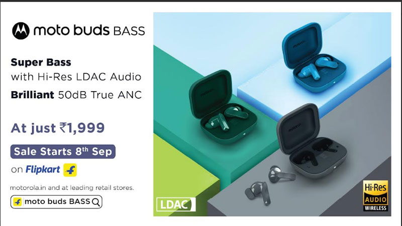 • The Moto Buds LOOP is Available from 1st Septemberstarting at Rs. 6,999* whereas the moto buds Bass will be available from 8th September forjust Rs. 1,999 across Flipkart, motorola.in and leading retail stores.