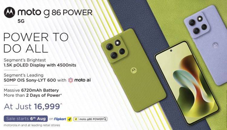 New Delhi, 30thJuly 2025:Motorola, a global leader in mobile technology and India’s leading AI smartphone brand^, today announced the launch of the moto g86 POWER — the perfect all-rounder phone in the g-series lineup, redefining the sub₹20,000 segment.The moto g86 POWER delivers flagship-level features, including the segment’s brightest 6.67” 1.5K pOLED Super HD flat display with 4500nits peak brightness, 120Hz refresh rate, and Gorilla Glass 7i Protection.The phone sports a segment-leading 50MP OIS Sony LYTIA™ 600 camera with moto AI and 4K video recording from all lenses, paired with an 8MP ultrawide + macro vision lens and a 32MP selfie camera.With a massive 6720mAh battery, it offers over two days of runtime. Built tough, the moto g86 POWER comes with IP68 + IP69 underwater protection and MIL-STD-810H military-grade durability, making it the most durable phone in its class.It is also powered by the segment-leading MediaTek Dimensity 7400 for smooth multitasking and gaming performance.The phone comes with 8GB RAM + 128GB storagevariant, available at an unbelievable launch price of ₹16,999* only.