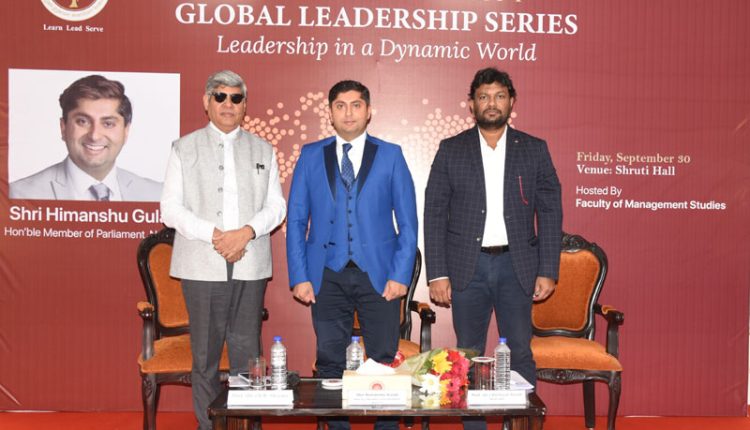 Cuttack:The Faculty of Management Studies (FMS) at SriSri University hosted the Global Leadership Series at its campuson 30th September, 2022, with the dynamic Mr. Himanshu Gulati, Honorable Member of Parliament, Norway, being the speaker.The event was also graced by the presence of Prof. Prof. B.R. Sharma, Vice Chancellor, SriSri University, Dr. D.D. Swain, Dean FMS,