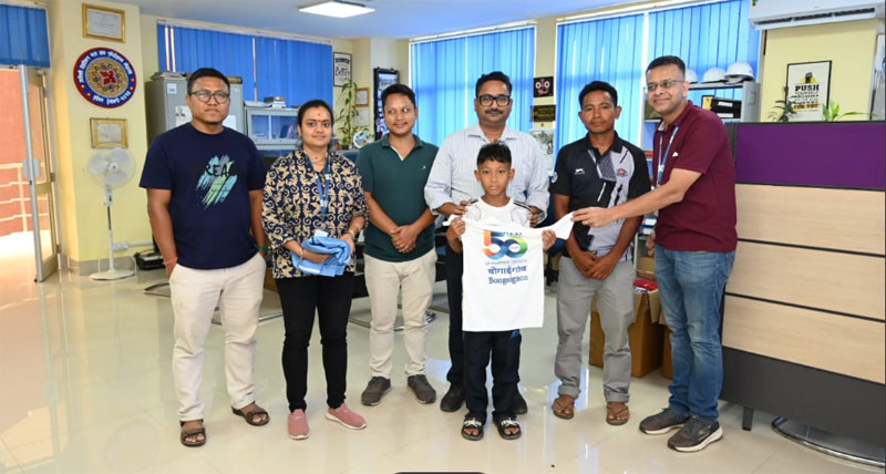As part of its ongoing commitment to nurture sports and youth talent from the local community, NTPC Bongaigaon has provided a financial assistance of ₹25000 to support his travel, accommodation, and sustenance during the training period under its CSR. In addition, the station will provide basic sports essentials such as a suitcase bag, water bottle, sports boots, shoes, a T-shirt with NTPC Bongaigaon logo, and a tracksuit for an amount ₹7,500. Shri  Amit Asthana, Head of HR, Shri Ajay Ram Baro, General Secretary, NBEU, Shri Pinchu Daimary, President, NBEU along with officials of HR Department were present to extend support to young Narzary.