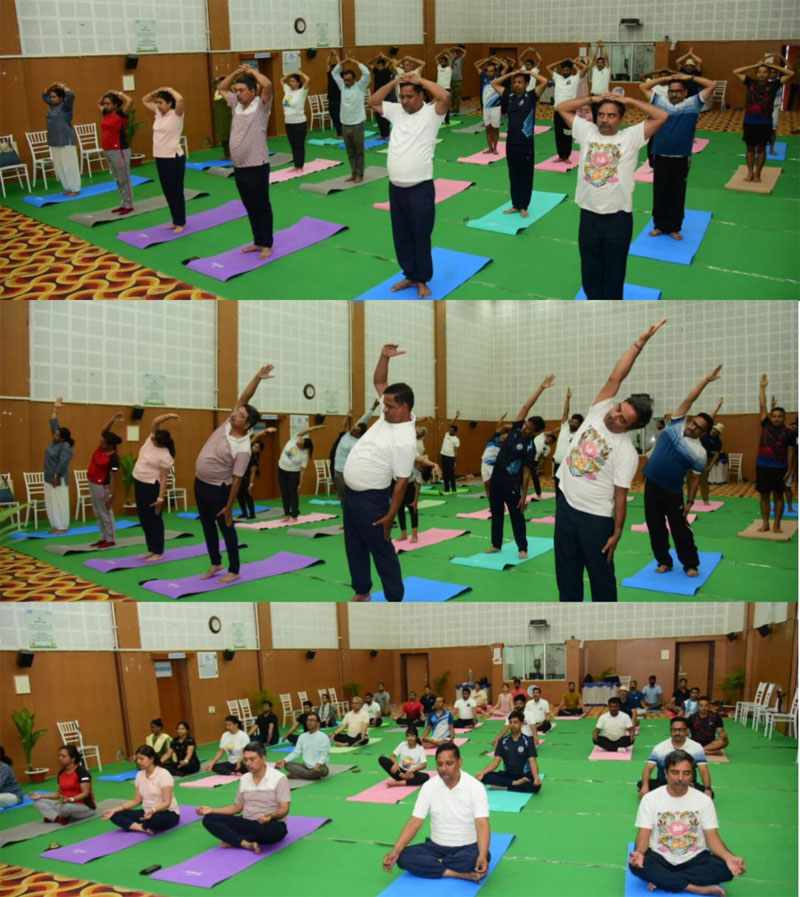 The session was led by Shri Madhusudan Pramanik, Former NTPC employee, a certified yoga guru and member of the Indian Yoga Association. His expertise brought depth and clarity to the practice sessions, which included guided meditation, asanas, and breathing techniques tailored to support wellness in the workplace and beyond.