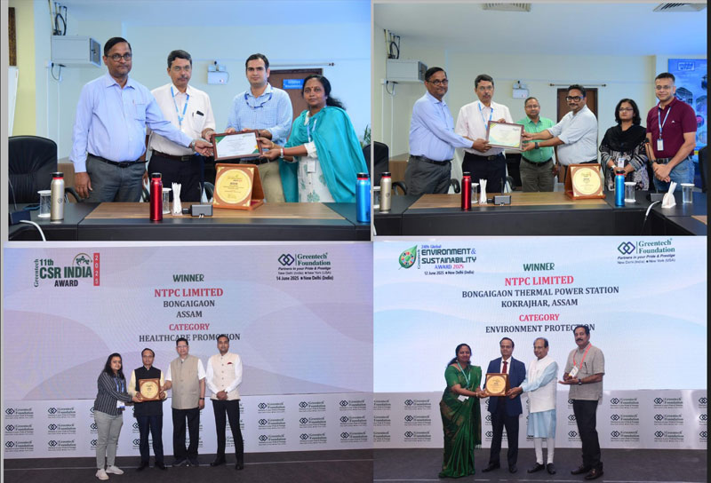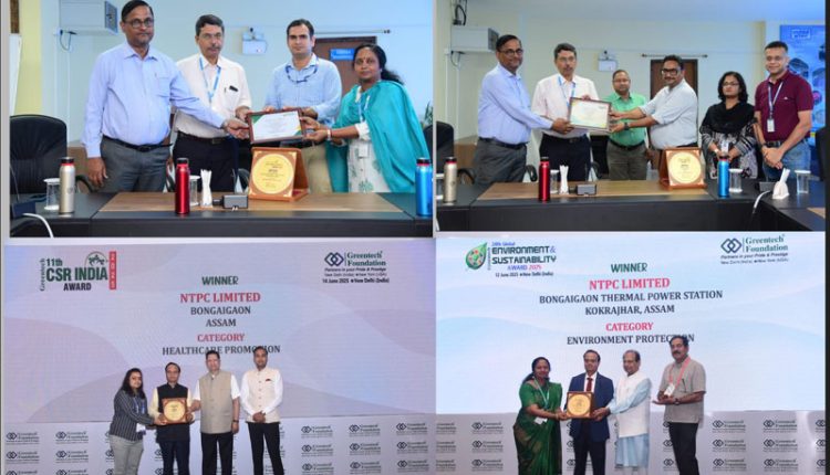 Bongaigaon: NTPC Limited, Bongaigaon, Assam has been honoured with the 11th CSR India Award 2025 in the category of Healthcare Promotion and the 24th Global Environment & Sustainability Award 2025 for outstanding achievements in Environment Protection by the Greentech Foundation.