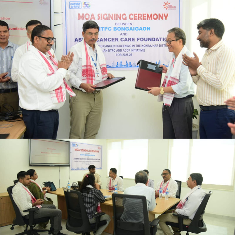 Bongaigaon: In a major step towards strengthening healthcare in the Bodoland region, NTPC Bongaigaon under its Corporate Social Responsibility (CSR) initiatives has signed a Memorandum of Agreement (MoA) with the Assam Cancer Care Foundation (ACCF) for implementing a Community-Based Cancer Screening Project in Kokrajhar district. The ₹33 lakh project aims to provide preventive and diagnostic cancer care to around 81,000 people across various villages, ensuring last-mile outreach through four Block Primary Health Centres (BPHCs) and approximately 80 Health and Wellness Centres (HWCs). The initiative will focus on early detection of oral, breast, and cervical cancers, conduct awareness and sensitisation programmes, and offer home-based palliative care for patients in need. The MoA signing ceremony, held at ACCF campus on 18th October 2025, was led by Shri Arnab Maitra, Head of Project, NTPC Bongaigaon.