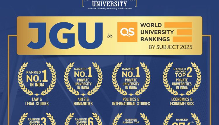 LONDON/SONIPAT: O.P. Jindal Global University (JGU) has achieved a historic milestone in the prestigious QS Subject Rankings 2025, reaffirming its position as a global leader in higher education. In a groundbreaking performance, JGU has not only retained its long-standing dominance in Law but has also secured top rankings in five new disciplines, marking a remarkable expansion of its academic excellence and global influence.
