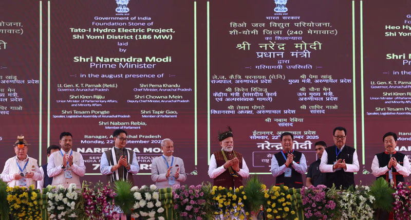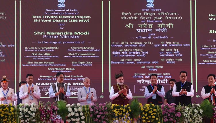 Itanagar(Kalinga Voice) : Prime Minister Shri Narendra Modi visited Arunachal Pradesh on 22nd September, 2025 and laid the foundation stone of two major hydro power projects of NEEPCO in Itanagar.The projects include the Heo Hydro Electric Project (240 MW) and the Tato-I Hydro Electric Project (186 MW) of NEEPCO, which is a wholly owned subsidiary of NTPC Limited. These projects having estimated cost of over Rs 3,700 Crore, are being developed by NEEPCO in joint venture with the Government of Arunachal Pradesh.Prime Minister Narendra Modi in his address emphasized that India’s vision of becoming a developed nation by 2047 depends on every state contributing to national progress, with the Northeast playing a key role. Highlighting the power sector, he noted India’s goal of producing 500 GW from renewable sources by 2030, where Arunachal Pradesh is actively contributing. He announced that the two new power projects in the state, which will boost Arunachal’s status as a power producer, create employment opportunities and ensure affordable electricity for development.The Heo Hydro Electric Project (3×80 MW), located in the Siyom sub-basin of Shi Yomi district, will generate about 1000 MUs annually. The Tato-I Hydro Electric Project (3×62 MW) will generate about 803 MUs annually. Both projects are expected to harness the vast hydroelectric potential of Arunachal Pradesh and promote sustainable energy generation, thereby bringing substantial socio-economic benefits in the region. By fostering new employment opportunities, these initiatives are poised to propel the state along a path of growth and progress—fueling development and building a brighter future for its citizens.Together, the Heo and Tato-I projects will significantly contribute to India’s clean energy targets, while also transforming the energy and development landscape of Arunachal Pradesh thereby improving the power sector across the country with the aim to create Viksit Bhart by 2047. Governor of Arunachal Pradesh, Lt Gen K T Parnaik (Retd), Chief Minister of Arunachal Pradesh, Shri Pema Khandu, Union Minister Shri Kiren Rijiju were present among other dignitaries at the event.