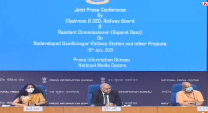 “Indian Railways has made a giant leap in Station Redevelopment program as Gandhinagar Capital Railway station is set to offer modern services to the Nation. The Prime Minister, Shri Narendra Modi will inaugurate newly developed Gandhinagar Capital Railway Station tomorrow. Redevelopment of Gandhinagar Capital railway station will act as a city booster and create investment cycle, job opportunities and in general uplift the economy of Gandhinagar, which is the capital of the state of Gujarat.” It is informed by the Chairman & CEO Railway Board Sri Suneet Sharma in a curtain-raiser press conference along with Ms Arti Kanwar, Resident Commissioner, Government of Gujarat, on the proposed inauguration of redeveloped Gandhi Nagar Railway station.