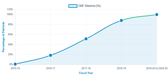 Percentage of Districts achieving Open Defecation Free (ODF) target