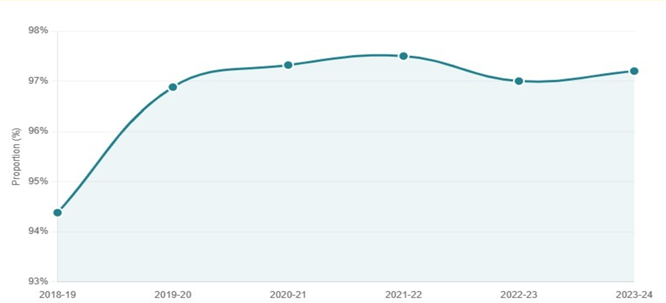 • India’s commitment to gender-sensitive school sanitation links infrastructure with equity and girls’ education, with 97.2% of schools having gender-segregated toilets in 2023–24, reflecting strong progress.