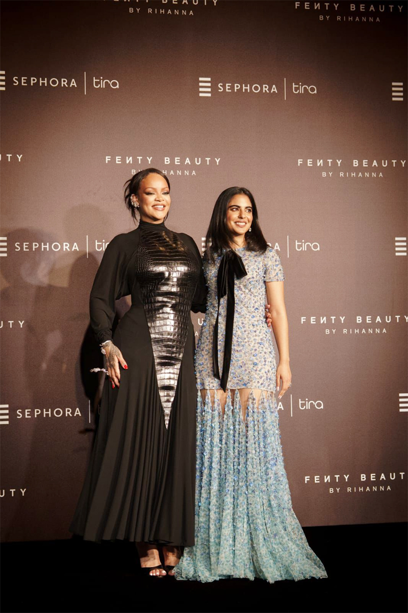 Mumbai : Global beauty icon Rihanna and Reliance Retail Executive Director Isha Ambani were seen at the unveiling of Fenty Beauty’s unique immersive pop-up at Palladium, Mumbai, marking a significant milestone in the brand’s India entry.