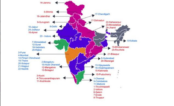 As many as 8 cities out of 10 in the less than a million-population category are from the Southern part of India– Tiruchirappalli, Vellore, Kochi, Thiruvananthapuram, Salem, Erode, Tiruppur and Puducherry. Only two cities – Shimla and Gurugram are from the Northern region. Tamil Nadu with Chennai and Coimbatore, and Maharashtra with Mumbai and Pune are the only states with two cities each in the million-plus category, that have made it to the Top 10 index.