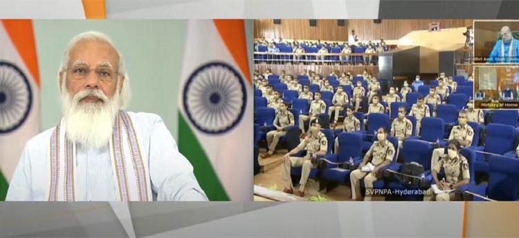 The Prime Minister, Shri Narendra Modi addressed the IPS probationers at Sardar Vallabhbhai Patel National Police Academy today via video conferencing. He also interacted with the probationers during the event. Union Home Minister Shri Amit Shah and Minister of State (Home) Shri Nityanand Rai were also present on the occasion.