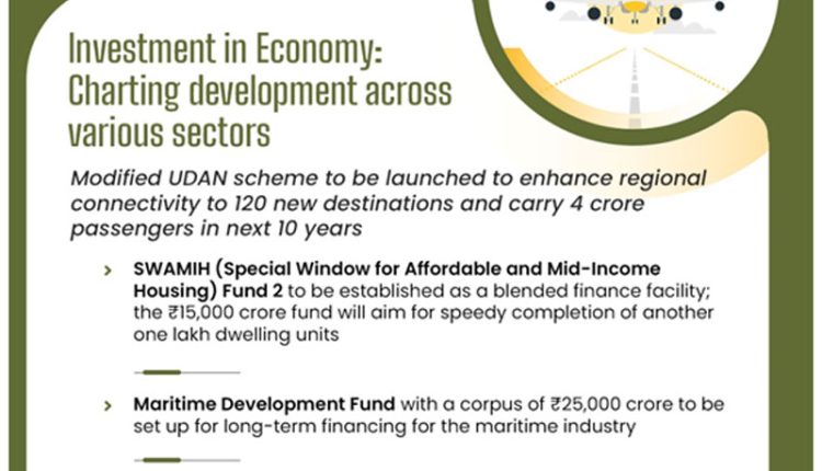 Praising the Regional Connectivity SchemeUDAN, Smt. Nirmala Sitharaman said in her speech that UDAN has enabled 1.5 crore middle-class people to meet their aspirations for speedier travel. The scheme has connected 88 airports and operationalized 619 routes. Inspired by that success, a modified UDAN scheme which will be launched to enhance regional connectivity to 120 new destinations and carry 4 crore passengers in the next 10 years and this scheme will also support helipads and smaller airports in hilly, aspirational, and North East region districts, stated the Finance Minister. She also informed the house that the government will facilitate upgradation of infrastructure and warehousing for air cargo including high value perishable horticulture produce. Cargo screening and customs protocols will also be streamlined and made user-friendly.