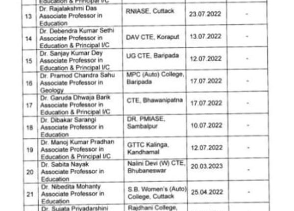 Bhubaneswar : 32 Associate Professors under Higher Education Dept. from different colleges of Odisha has been promoted to the rank of Professor. A notification in this regard has been issued by the Higher Education Department . The notification says that in pursuance of Rule 13 of Odisha Education Service (College Branch) Recruitment Rules, 2020, 32 Associate Professors under Higher Education Dept. from different colleges of Odisha in different disciplines belonging to OES cadre has been promoted to the rank of Professors carrying the Scale of Pay in Level 14 of the Pay Matrix under ORSP (CT) Rules, 2019 (Corresponding to pre-revised Scale of Pay of Rs. 37,400-67,000/- with AGP Rs.10,000/-)