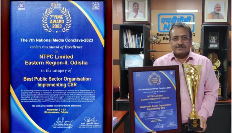 Bhubaneswar: NTPC Limited, ER-II Headquarters, Bhubaneswar conferred the ‘Award of Excellence’ in the category of ‘Best Public Sector Organization Implementing CSR’ by the jury member of the 7thNational Media Conclave – 2023 held at KIMS Auditorium, Bhubaneswar on 23.11.2023.
