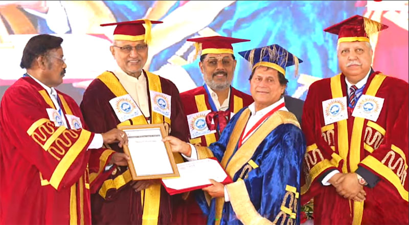 Shri C. P. Radhakrishnan, Vice-President of India handed over the Honorary Doctorate as the Chief Guest, in the presence of Dr. T.R. Paarivendhar, Founder Chancellor, SRMIST – Chennai; Prof. Paramajit S. Jaswal, Vice Chancellor, SRM University Sonepat Haryana, and Prof. V. Samuel Raj, Registrar.