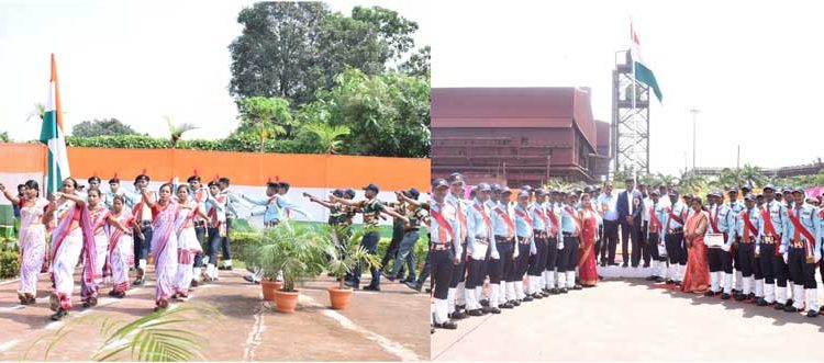 At the Beneficiation Plant in Dabuna, Keonjhar, Mr. Jaikishan Sharma, Head, Logistics, Dabuna hoisted the National Flag in the presence of employees and community members and recounted the inspiring contributions and struggles of the freedom fighters who dared to dream of a free India. The celebration continued with a parade led by the company’s security team. The stage then came alive with the performances of the ladies’ group, who enacted a stirring skit depicting the resilience of India’s fight for independence.