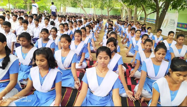 Paradeep: Celebrating International Day of Yoga, the employees of ArcelorMittal Nippon Steel India (AM/NS India) along with the students and teachers of Sri Maa High School, Paradeepgarh had a yoga session today in the school premises.The aim of organising the session was to encourage the students to practice yoga on a regular basis and lead an active and healthy life.