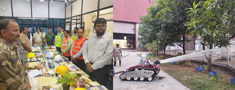 The drill simulated a fire incident at the GT transformer area of the power plant within the Paradeep Pellet Plant complex. The exercise involved active participation from various departments, including Operations, Mechanical, Electrical, Health & Safety, Administration, HR, Fire, and Medical. A key highlight of the drill was the successful deployment of a firefighting robot named “Krushna” in collaboration with the Odisha Fire Department, Kujang. This innovative technology minimises human involvement in firefighting operations, thus enhancing safety of personnel.