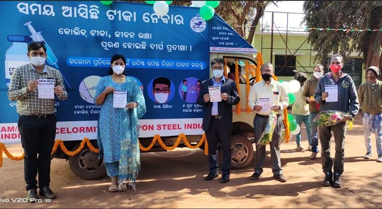 Bhubaneswar (Kalinga Voice) : ArcelorMittal Nippon Steel India(AM/NS India)has kick-started Covid 19 Awareness Campaign Vehicle at Koira in Sundergarh district and Barbil in Keonjhar district to encourage people to adopt covid appropriate behaviour and to contain the spread of the deadly novel corona virus.