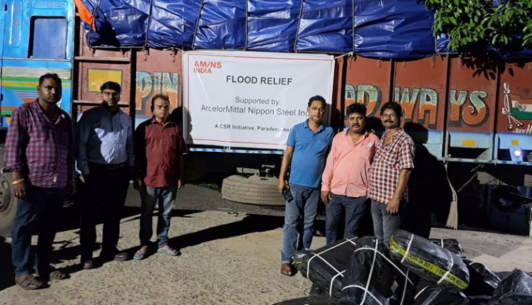 Paradeep: Complementing the efforts of the district administration to effectively address the flood situation in the state, ArcelorMittal Nippon Steel India (AM/NS India)under its CSR initiative as part of Disaster Management Relief & Rehabilitation measures has provided relief assistance to the flood-affected people of Kujang block in Jagatsinghpur District and Mahakalapadaand Marsaghaiblock in Kendrapara district.Officials of AM/NS India have distributed relief materials including flattened rice (chiwda), jaggery, biscuits, baby food, candles, polyethene sheets, match boxes, toothbrush and paste and cattle feed in the flood affected areas in collaboration with district administration.