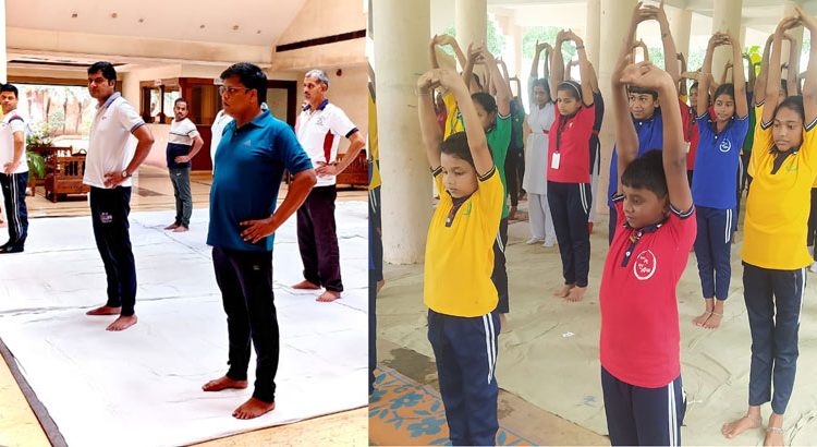 On the same day, CSR team of AM/NS India conducted a yoga session at G.C. High School, Nuagarh, Paradeep with over 200 students participating under the guidance of the school’s headmaster and the yoga teacher.