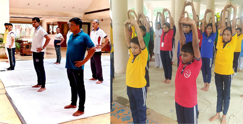 In Paradeep, AM/NS Ports organised a yoga session at the Paradeep Golf Club withover 100 participants including members of Nilachakra Club (Jagannath Colony), Ganesh Club (Lockpada), Swami Vivekananda Club (Bijayachandrapur), and students from Maa Ambika High School, who joined the session led by a certified yoga instructor. The event concluded with a Dhyana session and the chanting of “Om” creating a positive and serene atmosphere.