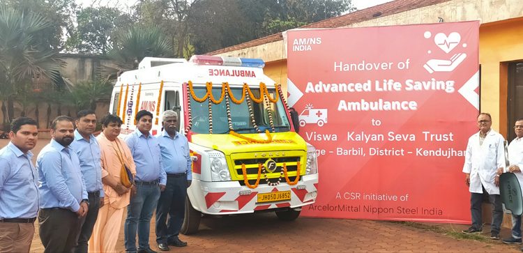 Bhubaneswar: To strengthen the rural healthcare system ArcelorMittal Nippon Steel India under its Corporate Social Responsibility intervention haspresentedan Advanced Life Support (ALS) Ambulance to Viswa Kalyan Seva Trust, an NGO working for community welfare in Odisha and Jharkhand. This ALS Ambulance will be managed by Viswa Kalyan Seva Trust and offer free of cost healthcare services in 50 villages of Odisha and Jharkhand. A team of doctors and paramedical staff will be visiting the villages at regular intervals to ensure better patient care. This state-of-the-art critical life-saving ambulance is equipped with defibrillator, ventilators, suction machine, nebulizer, Automatic BP apparatus, Head Immobiliser, Cervical collar, Oxygen cylinder, Portable X Ray, ECG, Pathology setup and others.