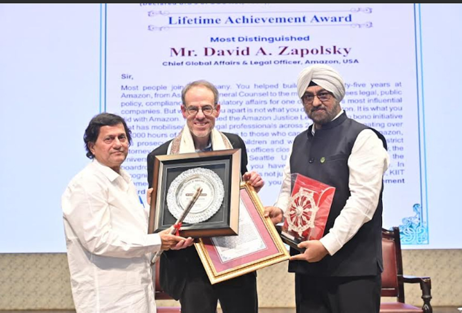 Bhubaneswar, Feb 21: KIIT University conferred its prestigious Lifetime Achievement Award on Mr. David A. Zapolsky, Chief Global Affairs and Legal Officer, Amazon US, during a special ceremony on Friday.