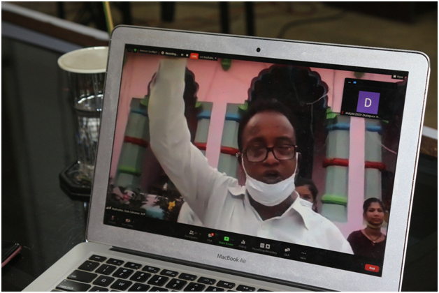 The virtual performance of a patriotic song by Madhu Bhai, Convener, NYP, along with 1000 children and youth, was fascinating. Madhusudan Das, popularly known as “Madhu Bhai” the State Convener of National Youth Project, a social activist, motivational speaker and a youth trainer, has been inspiring million over three decades. In the virtual programme, he motivated and inspired children through his encouraging words, songs and group singing.