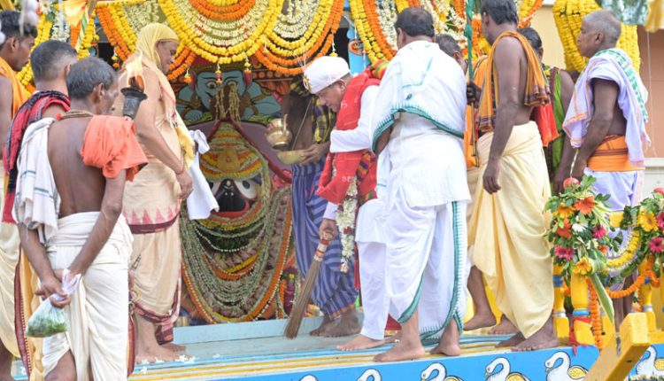 The day began with Mangala Arati, followed by other rituals including the Pahandi. The ceremonial sweeping of the chariots, known as Cherapahanra, was conducted by the Founder of KIIT and KISS Dr Achyuta Samanta at 3:30 PM. Devotees pulled the chariots of Lord Balabhadra, Devi Subhadra, and Lord Jagannath at 4:00 PM.